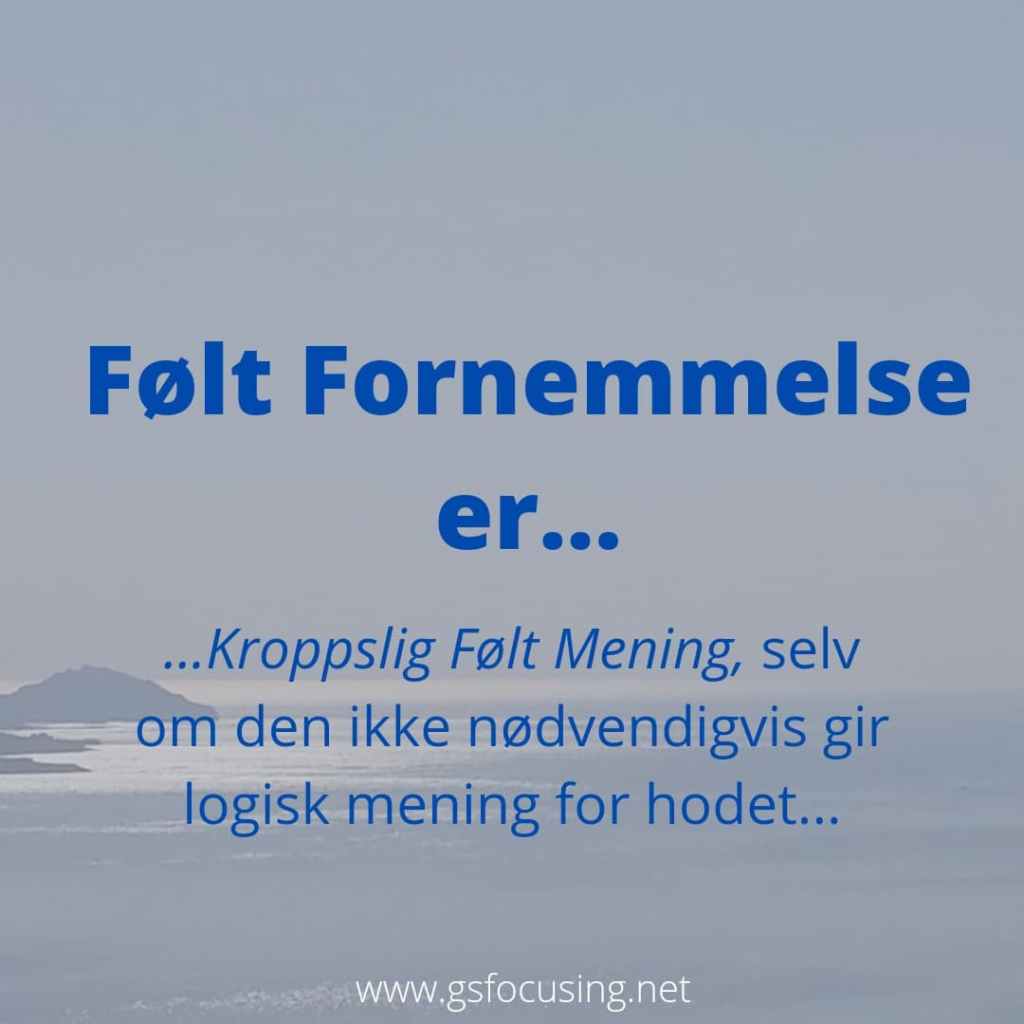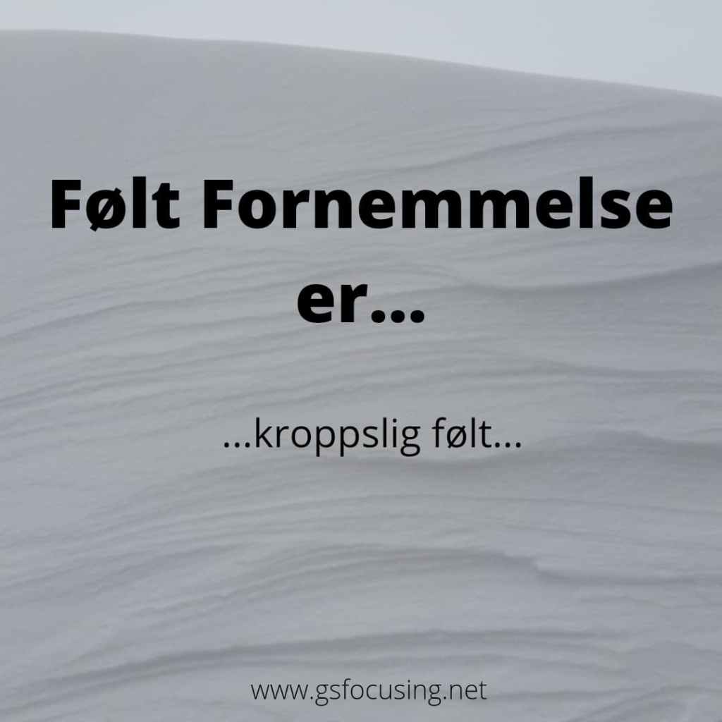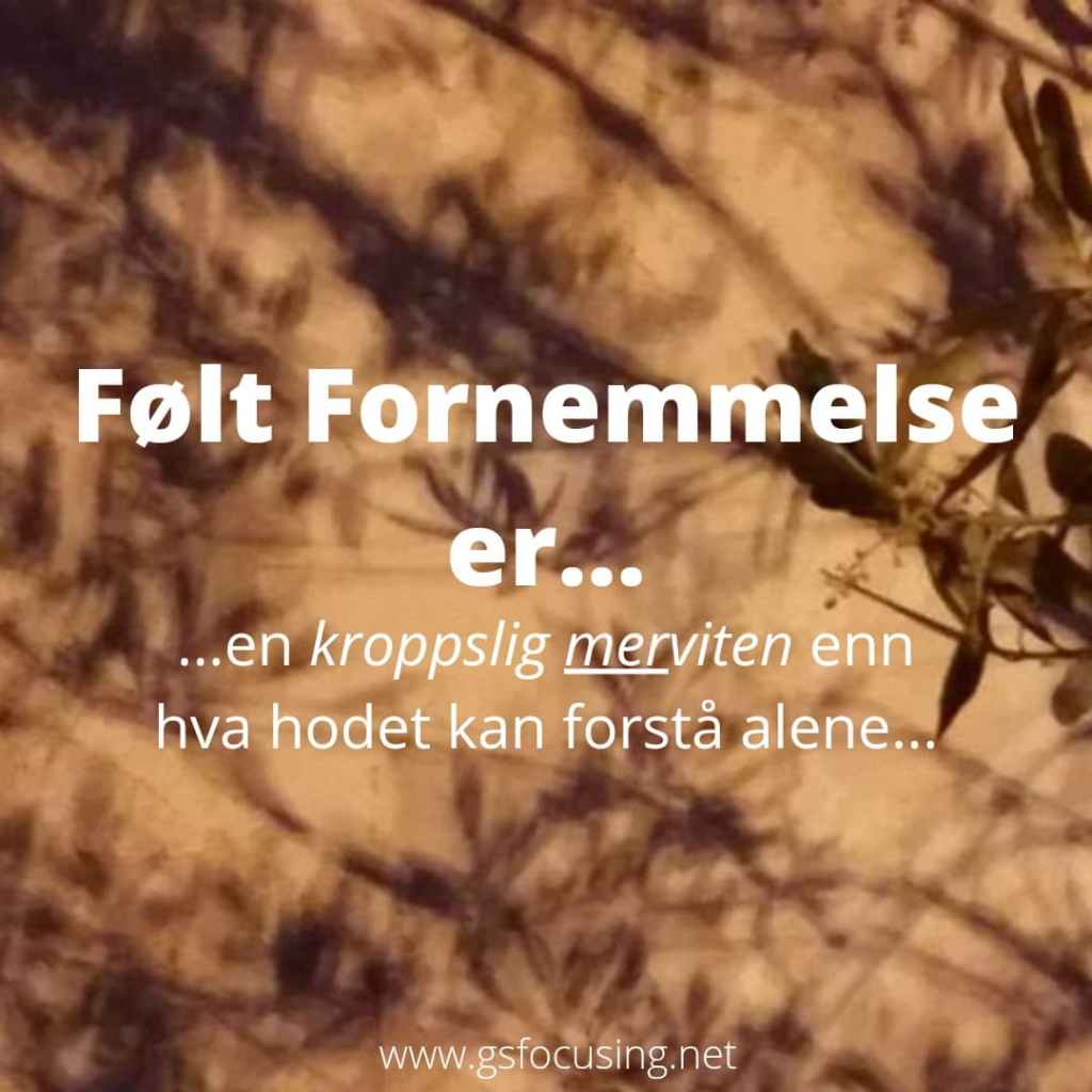 Følt Fornemmelse er vag, grumset, uklar, først ordløs og navnløs, og allikevel helt tydelig følt, på en kroppslig måte, hvis vi inviterer den til å forme seg. Den forsvinner så fort vi dømmer, analyserer eller forsøker å gjøre den logisk for tidlig. Hvis vi tar et øyeblikk til å sitte ved siden av den, sammen med den, med åpen, aktiv, ikke-invaderende, ikke-dømmende nysgjerrighet, vil den kunne åpne seg og komme mer tydelig, med overraskende og dypt følt mening.