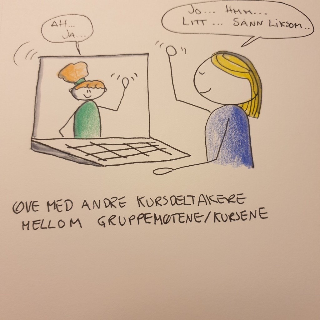 Du får tilsendt en lenke på epost, og installerer Zoom i nettleseren din. Lenken er «møterommet» for kurset. Zoom kan brukes både på datamaskin, nettbrett og mobil, men det anbefales å bruke en skjerm som er stor nok til at en opplever å se og få kontakt med alle i gruppa.